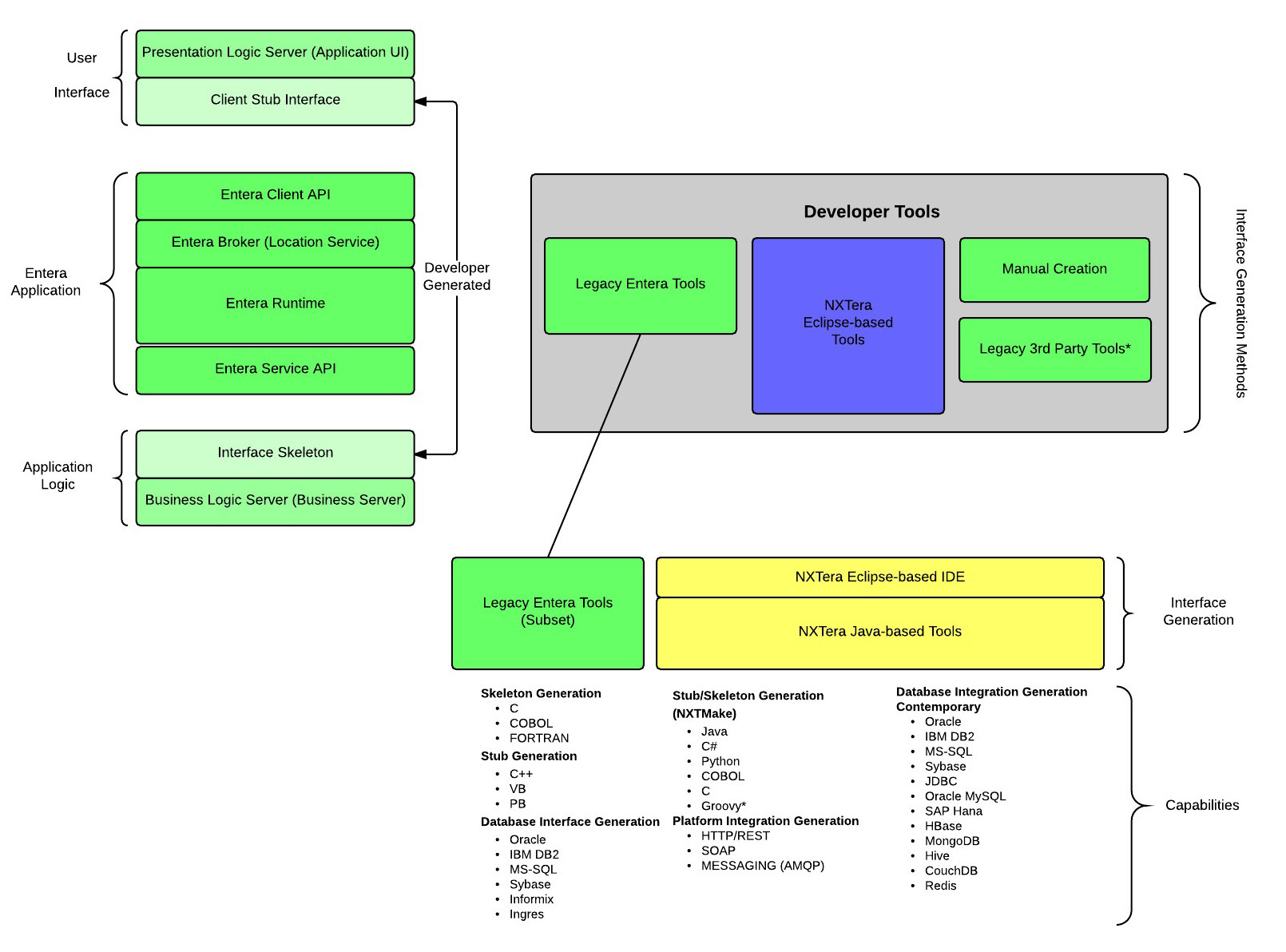 With NXTera, Entera applications can be extended to support and integrate with a wide selection of middleware platforms and distributed architectures: